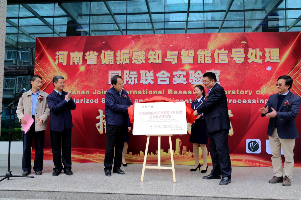 3月29日下午,bet36体育在线举行河南省偏振感知与智能信号处理国际联合实验室揭牌仪式。河南省政协副主席张震宇,bet36体育在线党委书记闫纪建、院长岳修峰、副院长郑直,中科院研究员杨瑞霞、副研究员刘玉,bet36体育在线相关单位负责人共同参加了揭牌仪式。仪式由郑直副院长主持。