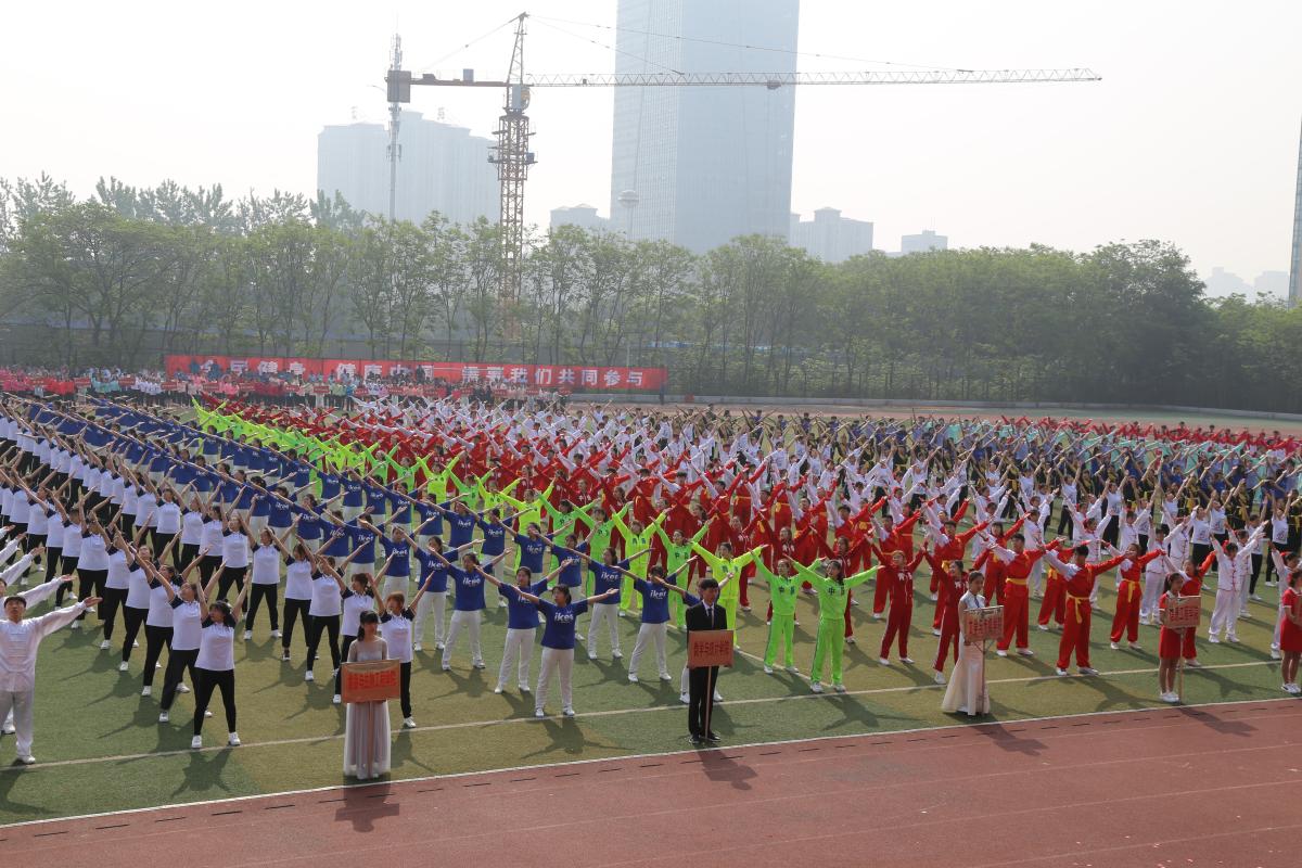开幕式上,教职工代表队进行了大众广播操(工间操)比赛,二级学院学生代表队进行了武术健身操“英雄少年”的比赛。
