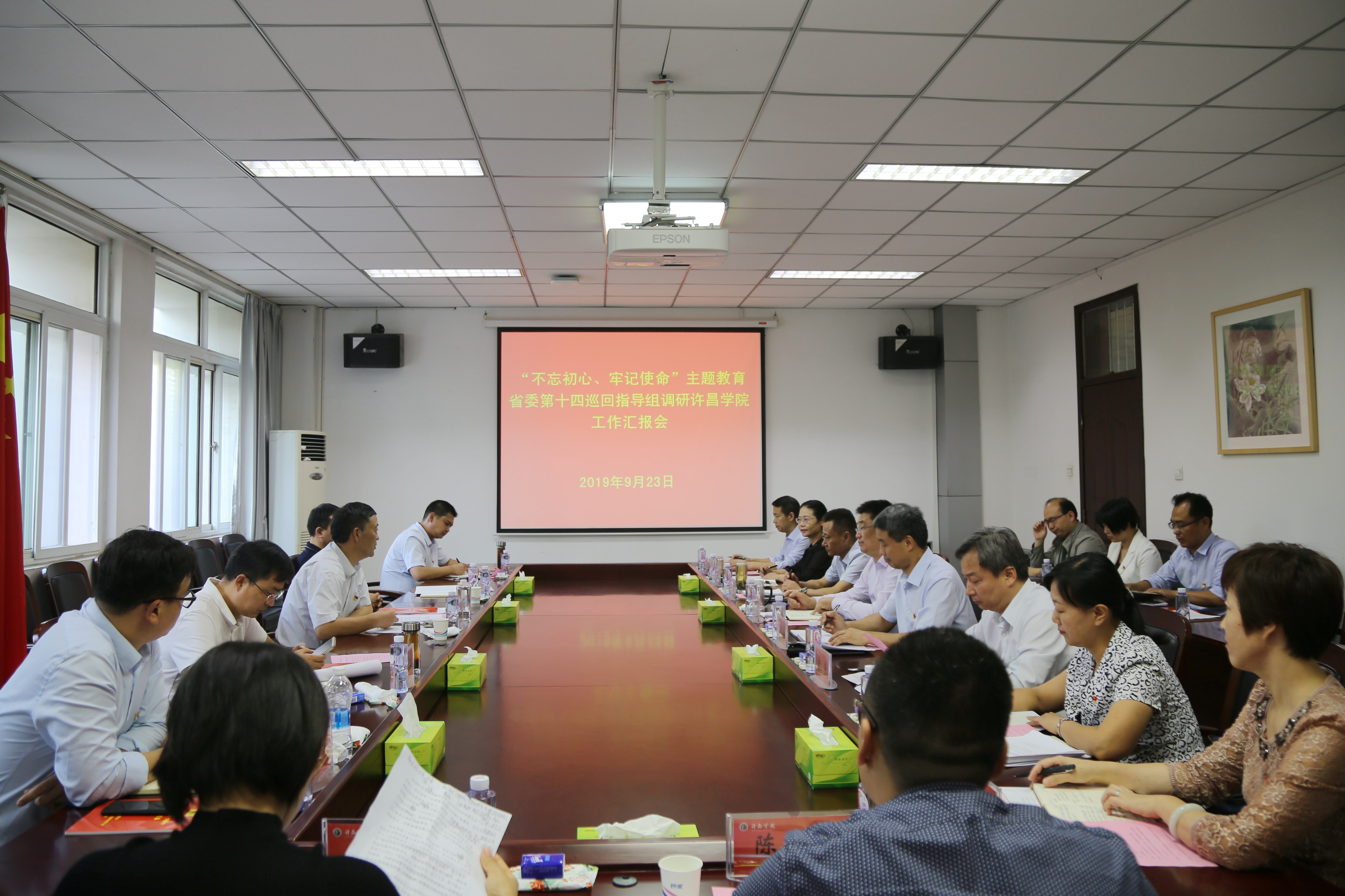 9月23日下午,“不忘初心 牢记使命”主题教育省委第十四巡回指导组到bet36体育在线调研指导工作,通过听取汇报、实地考察、查阅资料等形式,深入了解bet36体育在线主题教育工作推进落实情况。省委第十四巡回指导组组长、郑州轻工业大学原党委书记石恒真出席汇报会并作指导讲话,省委第十四巡回指导组成员刘志刚、母传飞、刘涛、于庆洋出席会议。bet36体育在线党委书记闫纪建、院长岳修峰、党委副书记孙海,学校主题教育领导小组成员,部分基层党委、党总支(直属党支部)书记及基层党支部书记参加会议。汇报会由党委副书记、院长岳修峰主持。