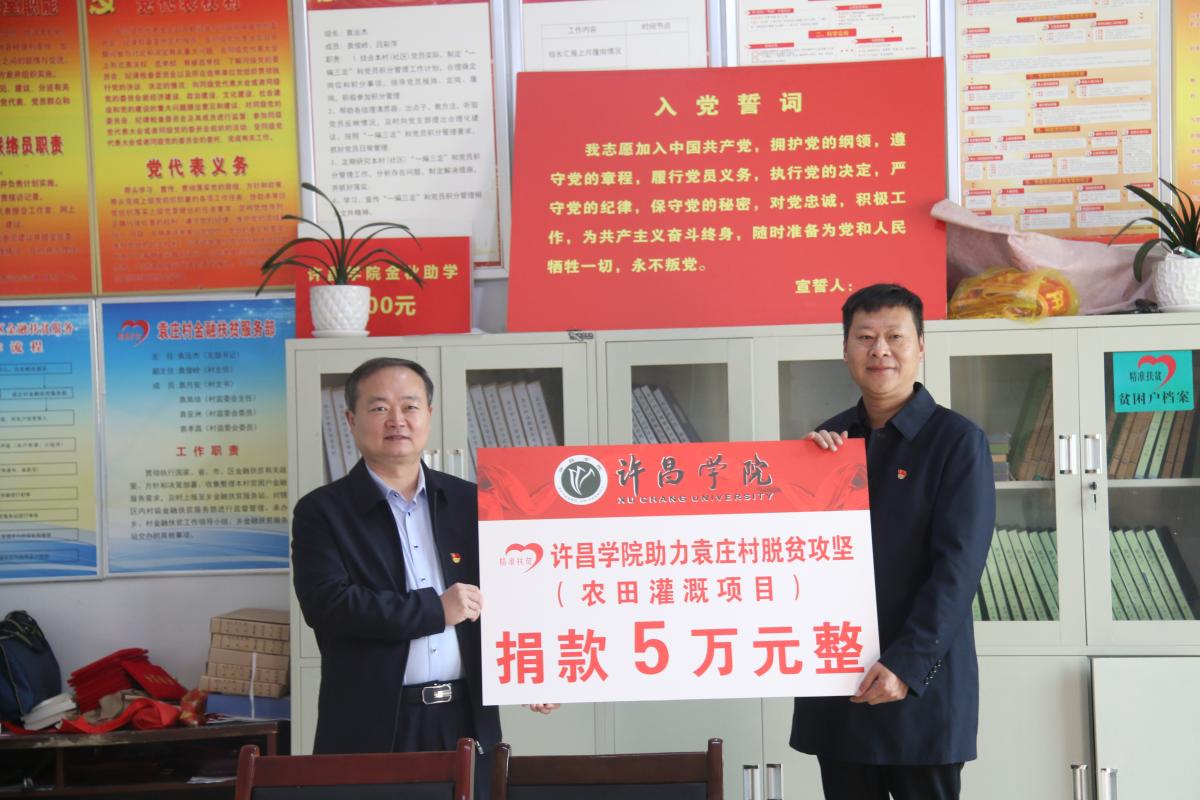 仪式上,副院长郭涛代表学校向袁庄村捐赠伍万元助力脱贫攻坚资金。他指出,bet36体育在线与袁庄村已结下深厚的友谊,接下来要争取更多好的项目在袁庄村落地开花结果,要利用好bet36体育在线各项资源,特别是文化教育资源,扶贫扶志相结合,物质文明与精神文明相结合,把乡村的精神文明建设、文化建设抓起来,把农民的精神面貌展现出来。要抓好农村党建工作,聚心齐力,办好惠民实事,全力以赴做好袁庄村各项帮扶工作。