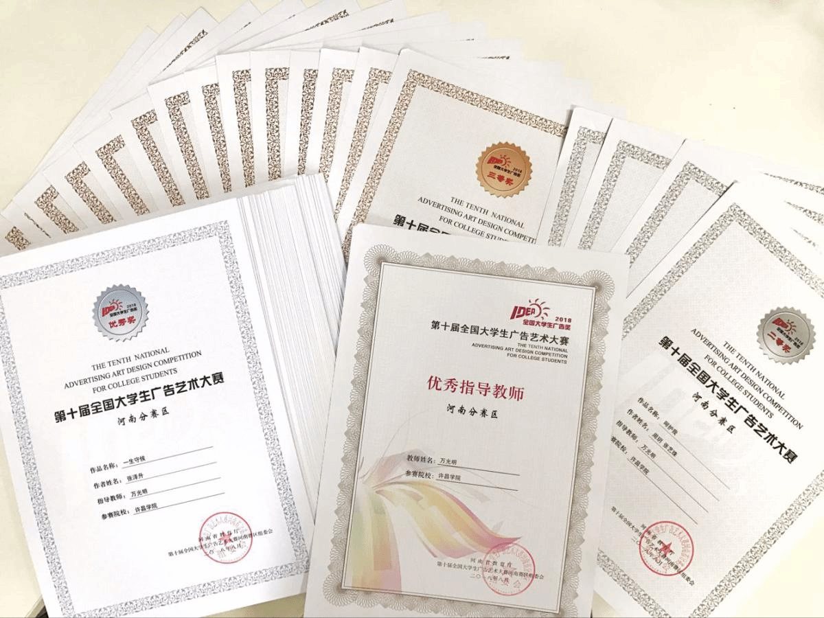 全国大学生广告艺术大赛是国家级大学生学科竞赛活动之一,是高等学校教学质量与教学改革工程的重要组成部分,对于激发大学生兴趣与潜能,培养大学生创新精神、实践能力、就业能力和团队协作意识,进一步创新人才培养模式,具有重要意义。bet36体育在线文学与传媒学院认真筹备,积极参赛,所推荐上报的作品有92部获奖,其中全国赛优秀奖3个,河南赛区二等奖4个,三等奖14个,优秀奖74个。同时,bet36体育在线文学与传媒学院播音与主持艺术专业教师万光明获得省级优秀指导教师奖。(图片由文学与传媒学院提供)
