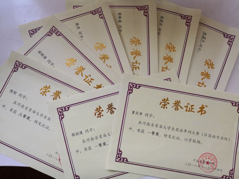 11月24日,由河南省翻译协会举办、黄河科技学院承办的河南省首届单词大赛决赛在黄河科技学院举行,本次大赛吸引了省内130多所高校的近9万名学生报名参赛,最终来自44所学校的105名优秀学子成功晋级决赛。bet36体育在线学生曾庆举、邵润通获得英语非专业组一等奖,沈英杰、陈刚、郝顺清、陈笑获得英语非专业组三等奖,郭路超、钱雪芹获得英语专业组三等奖。