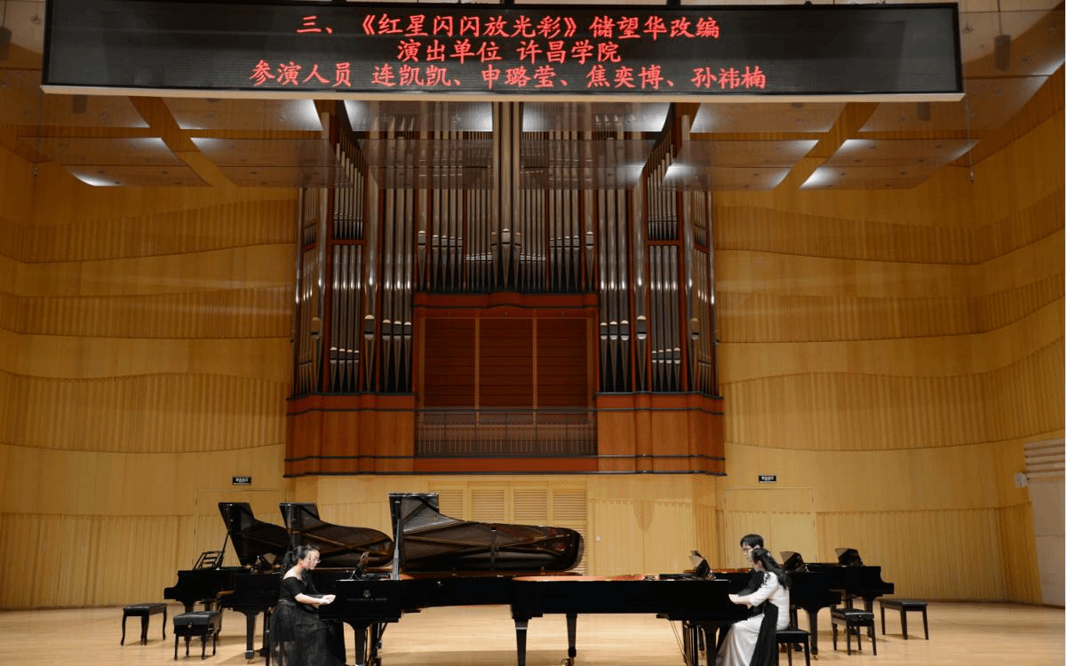 2018年12月30日晚,由bet36体育在线音乐舞蹈学院选送的双钢琴改编曲《红星闪闪放光彩》,在河南省艺术中心音乐厅成功参演致敬改革开放四十周年钢琴演奏系列活动之2019新年钢琴音乐会暨河南高校多钢琴重奏合奏音乐会。